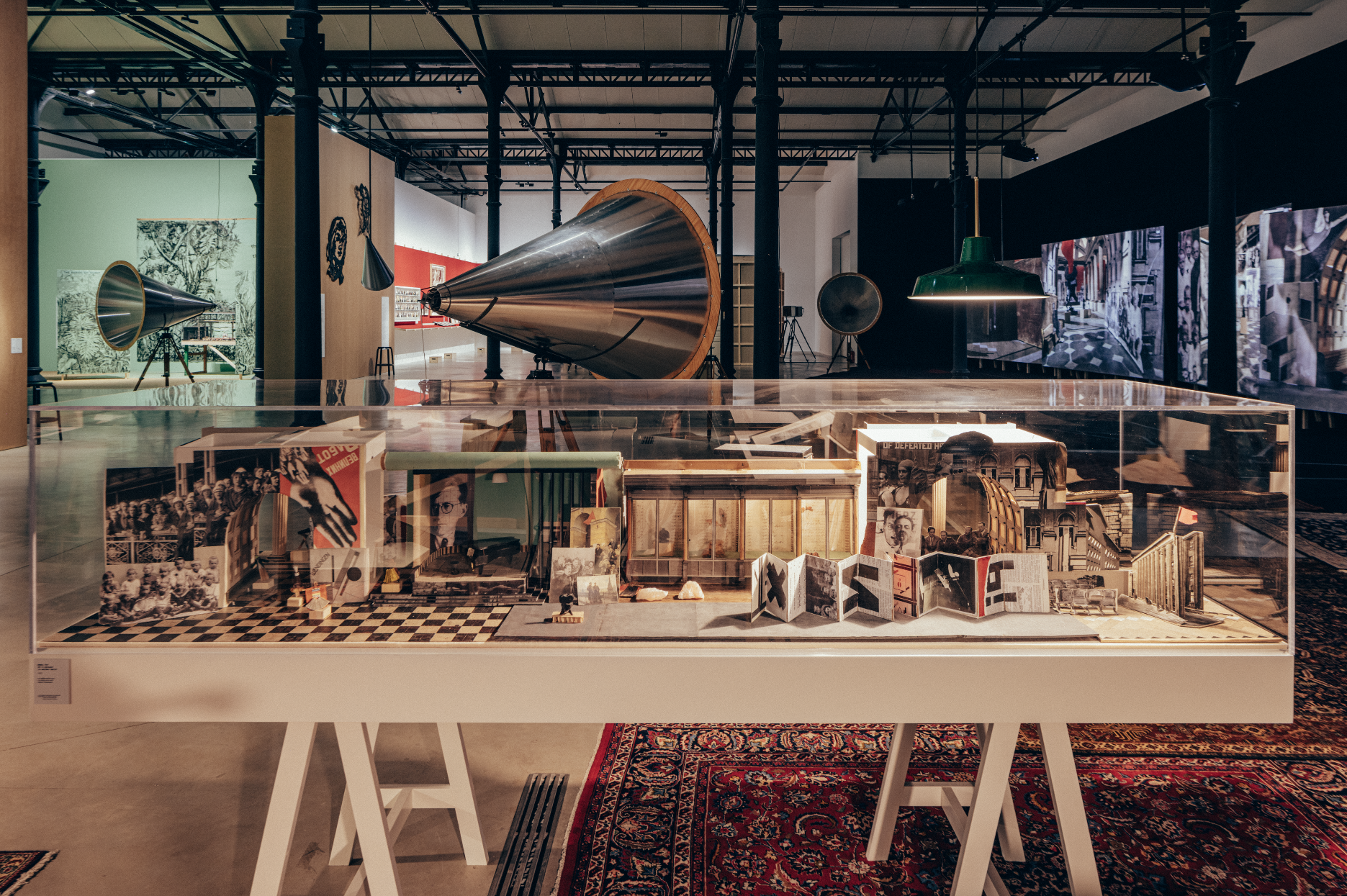 Comme les personnages de The Great Yes, The Great No, tous sont représentés sous formes de poupées ou de marionnettes en costumes de cartons découpés surmontées de photographies de leurs visages, soit selon un procédé inverse à celui qu’avait employé Kentridge en 2010 pour sa mise en scène du Nez de Chostakovitch, un opéra tiré de la nouvelle éponyme de Nicolaï Gogol, auquel tout un espace de l’exposition est consacré. Les « corps » des personnages y étaient extraits de gravures ou de photographies publiées dans l’Illustrated London News, et surmontés d’un énorme nez sombre à la place de la tête. L’aspect pesant dudit appendice rappelle une autre figure typique de l’univers kentridgien, celle du porteur, dont il a fait en 2018 le sujet d’un autre film, également projeté à La Mécanique générale, The Head and the Load, en mémoire des centaines de milliers de porteurs africains morts pendant la Première Guerre mondiale, et le plus souvent absents des livres d’histoire.