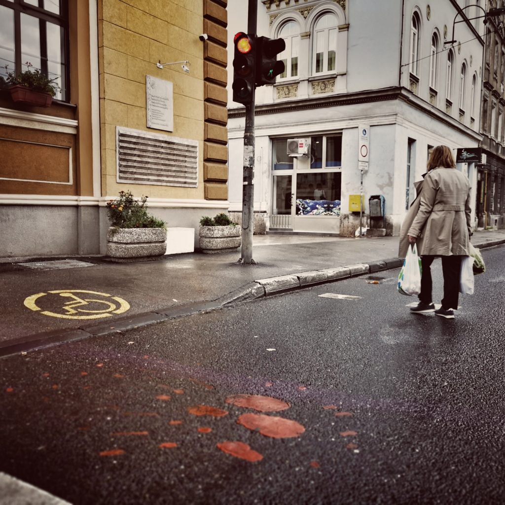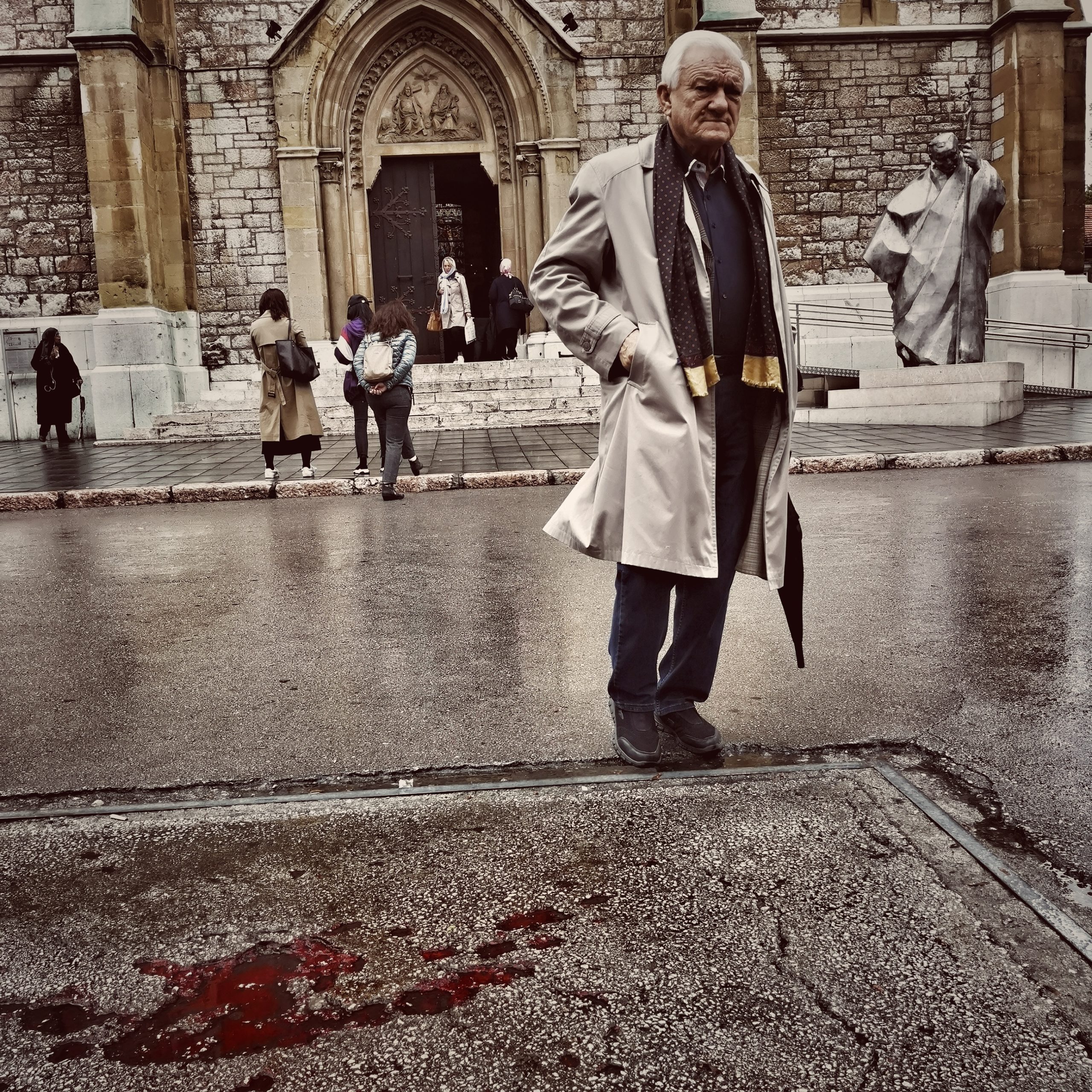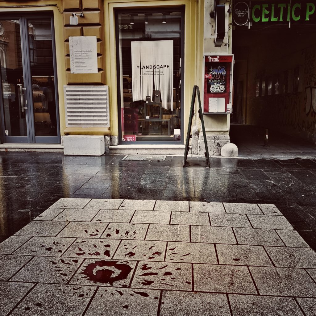 Peu après 9 heures du matin, le 27 mai 1992, à partir des positions des Serbes de Bosnie à Vranjes, au sud-est de Dobrinja, trois obus de mortier ont explosé, frappant des civils qui s’étaient mis en file pour acheter du pain, dans Vase Miskina (aujourd’hui Ferhadija), rue principale du vieux Sarajevo. 26 personnes sont tuées, 108 blessées. Ce qui se passe alors en Bosnie est une guerre largement médiatisée et, au cœur de la vieille ville de Sarajevo, il est indéniable que la population sans défense était la cible, une cible facile ; ses efforts pour survivre et la terreur qu’elle subit ont, lors des reportages, une fonction de propagande.
