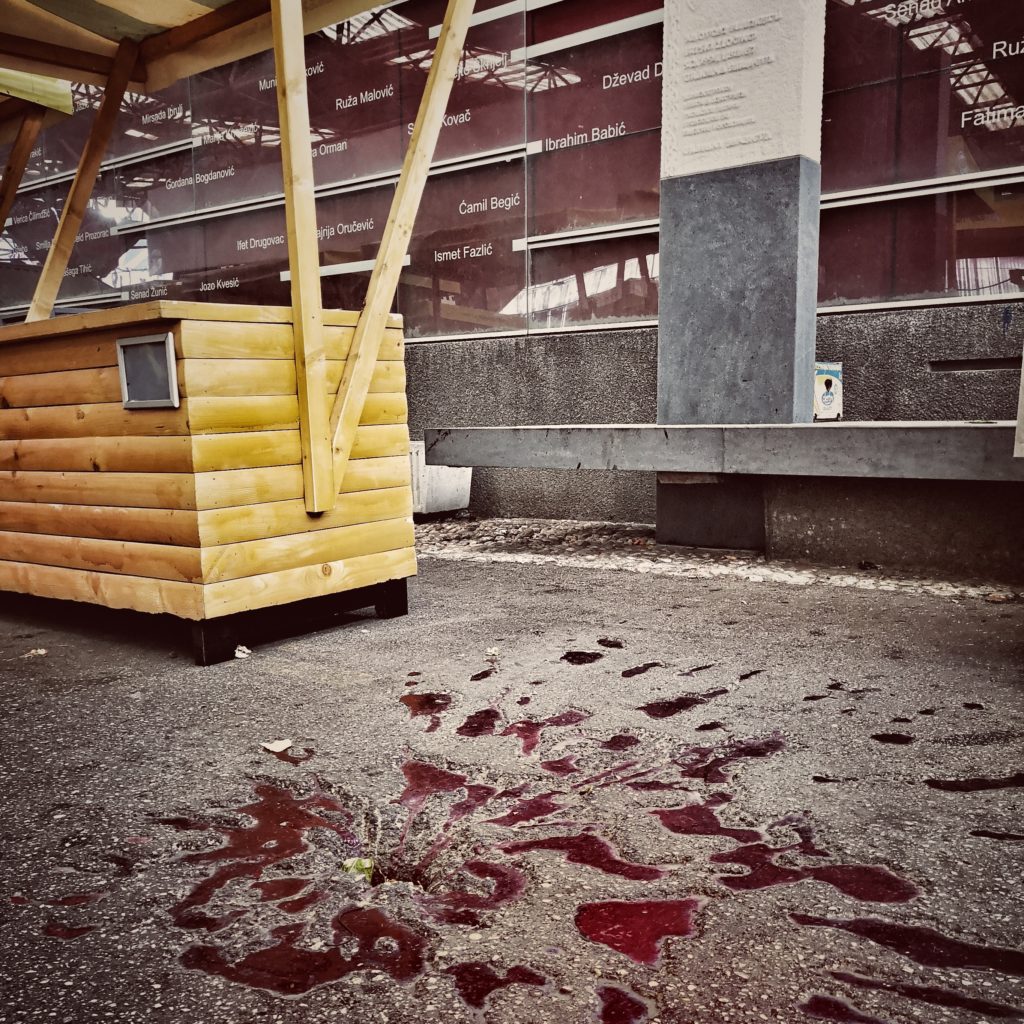 Sur le sol de Sarajevo, des formes particulières sont apparues après la levée du siège mené par l’armée serbe de Bosnie (VRS) entre avril 1992 et fin février 1996. La ville, entourée de montagnes de plus de 900 mètres, ayant fini par être encerclée, subit alors quotidiennement 300 tirs d’obus de mortier dirigés principalement contre ses 340 000 civils.