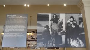 On peut lire sur le panneau de gauche : « Plus de 12 millions d’immigrants sont entrés aux États-Unis par Ellis Island, la porte principale de la nation entre 1892 et 1924. Aujourd’hui, plus de 100 000 millions d’Américains peuvent reconstituer leur généalogie jusqu’aux immigrants qui sont passés par l’île avant d’être dispersés aux quatre coins du pays. Après sa restauration dans les années 1980, cet immeuble a réouvert comme musée de l’Immigration d’Ellis Island, un symbole du patrimoine des immigrants de cette nation. Les expositions du musée retracent le rôle d’Ellis Island dans l’histoire de l’immigration et le replacent dans le contexte de son époque et dans celui, encore plus large, de quatre siècles d’immigration en Amérique. Les expositions présentent également les immigrants eux-mêmes et leur donnent la parole. Chacune de leurs histoires est unique et témoigne du courage et de la détermination qui ont rendu des hommes et des femmes capables de quitter leurs foyers et de chercher de nouvelles opportunités sur une terre inconnue. »